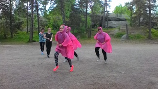 Marjamaille tytöt harjoittelevat ohjelmaa Kontion Majalla